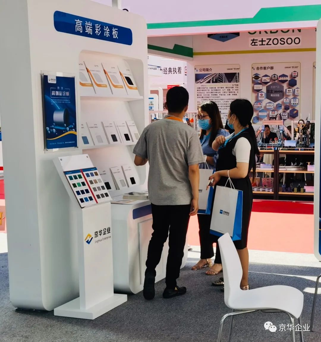 其中,产品展示区—NG娱乐企业旗下产品的NG娱乐彩涂板、NG娱乐精品彩涂板、NG娱乐高端彩涂板、热镀锌板、高强钢板等板材,凭借自身轻质、美观、防腐、抗菌、环保等优质属性吸引了众多参展者的驻足观看和青睐。企业旗下的5大板材可广泛应用于基础设施建设、交通工程、商业地产、工业建筑等领域,为大美雄安的建设保驾护航。