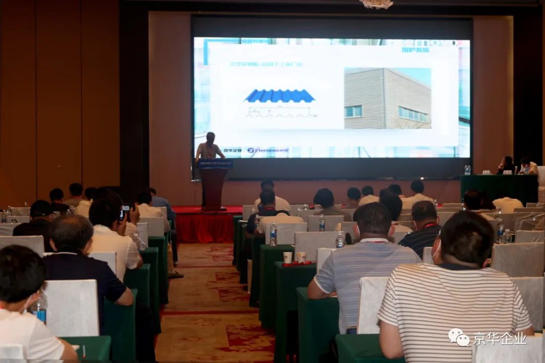 NG娱乐兆建应邀参加此次会议,在“碳达峰、碳中和”目标背景下,全面助力提高钢结构建筑质量、技术与应用水平并结合会议主题推出《钢构围护系统的彩钢解决方案》演讲课题。同时,NG娱乐兆建对于锌铝镁镀层板、NG娱乐彩涂板以及Eternovo恒新功能性彩涂板的介绍也得到了现场参会企业的高度关注与肯定。