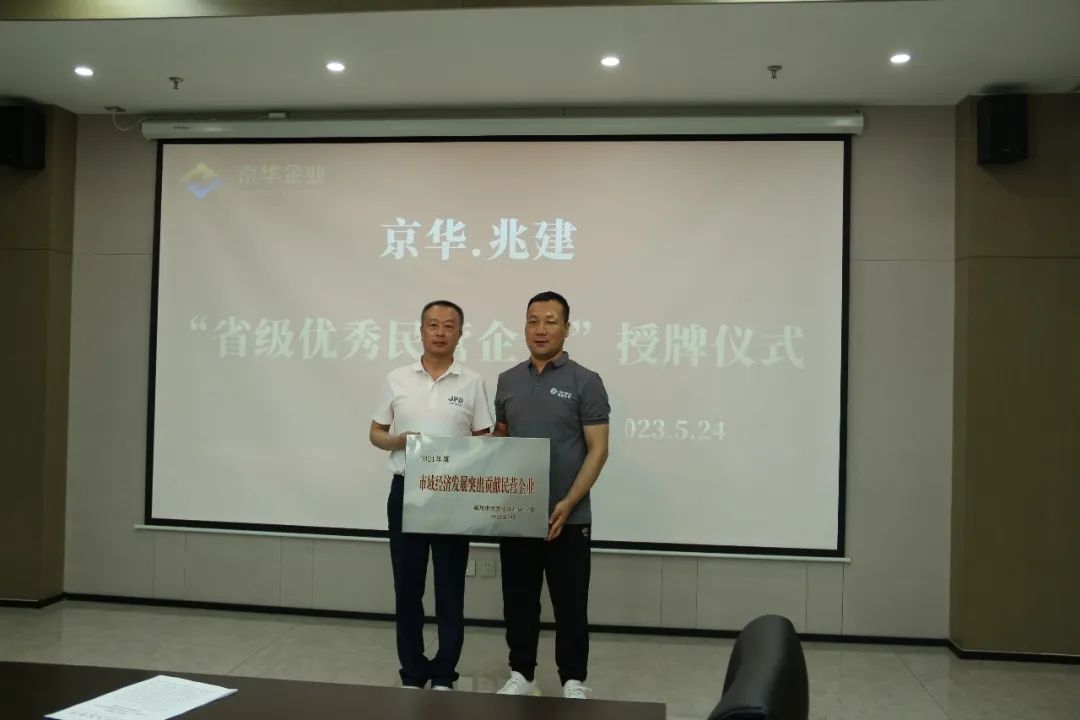 NG娱乐企业坚持高质量发展方向,拉高思想境界“标杆”,前推发展理念“起跑线”,打造优秀民营企业执行力与凝聚力。河北兆建金属制品有限公司荣获由河北省人民政府颁发的“省级优秀民营企业”以及廊坊市民营经济领导小组颁发的“市域经济发展突出贡献民营企业”奖项,授牌仪式于5月24日上午举行。
