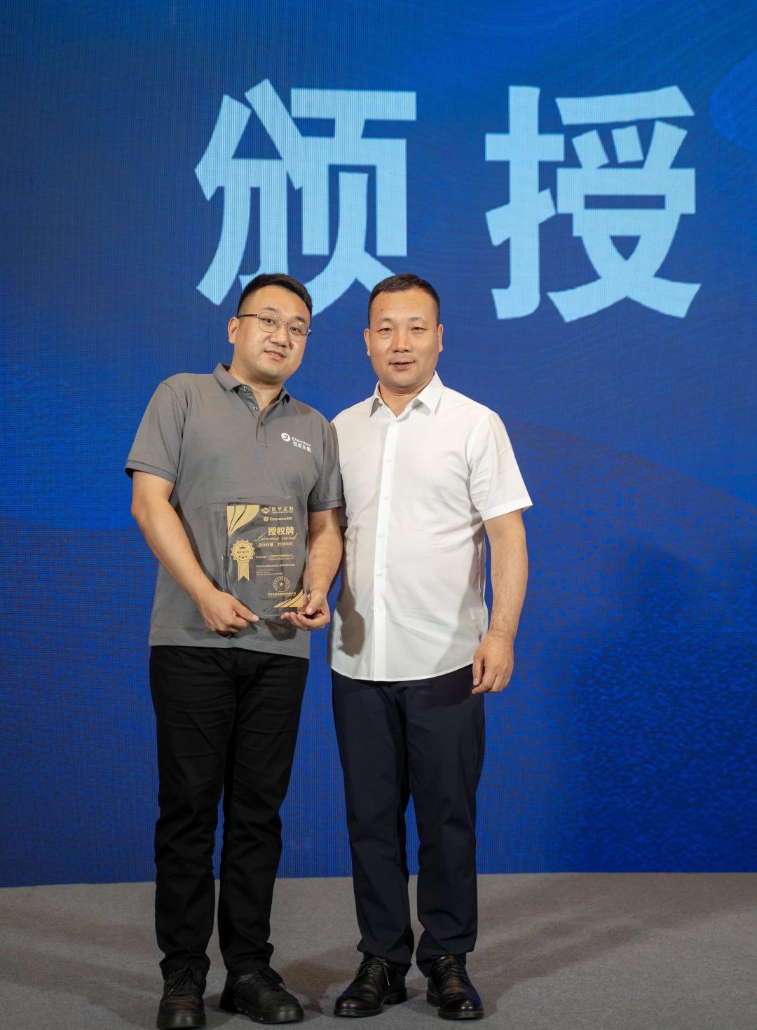 在恒新彩涂板经销商的颁授仪式上,NG娱乐企业总经理陈铁柱先生为新洋实业总经理齐林先生颁发授权牌,并与特邀嘉宾一同合影留念,进一步加深合作。恒新品牌的成功离不开合作伙伴的支持和努力,而颁授仪式则是向他们致以最真挚的感谢和祝福的重要时刻。