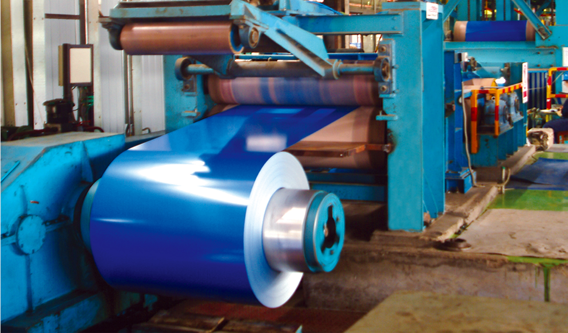 彩涂生产线引进国内成套先进设备,采用三涂三烘工艺,集彩涂、印花、热覆膜、冷覆膜、压花和罩光于一体的多功能复合生产线。