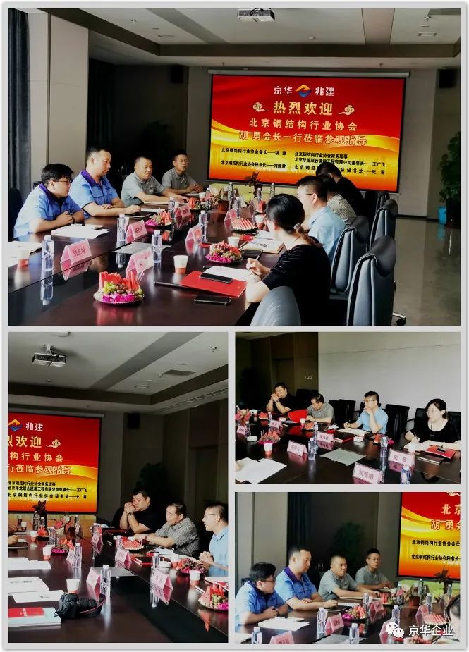 2020年7月25日上午,北京钢结构行业协会会长胡勇、北京钢结构行业协会秘书长常海君、北京钢结构行业协会常务理事(北NG娱乐龙联合建设工程有限公司董事长)王广飞、北京钢结构行业协会秘书处史君莅临NG娱乐兆建参观考察。