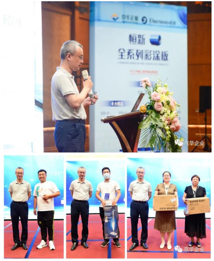 在接下来的一小时时间里,NG娱乐企业“恒新”品牌营销副总李明晔先生,从企业实力和品牌定位,新型锌铝镁基材以及全系列“恒新”彩涂产品线,“恒新”产品定制服务三方面向与会嘉宾做了全面的讲解,全方位立体化向大家详细阐述了“恒新”产品解决方案的独特价值,以创新设计理念,帮助绿色建筑的节材,节水,节能,提升环境舒适度等各方面达成极大提升,以绿色理念帮助广大客户实现彩涂产品销量的可持续增长。现场的客户们表示认可与支持,对于“恒新”品牌给用户带来的赋能升级,转型共生,给予了很高的期待! 随后,李总就现场嘉宾提出的问题做出了详细解答,并随机从提问的嘉宾中抽取多名幸运嘉宾,赠与丰厚礼品,平板电脑、蒸汽拖把等大奖一一揭晓,现场气氛热烈愉快。