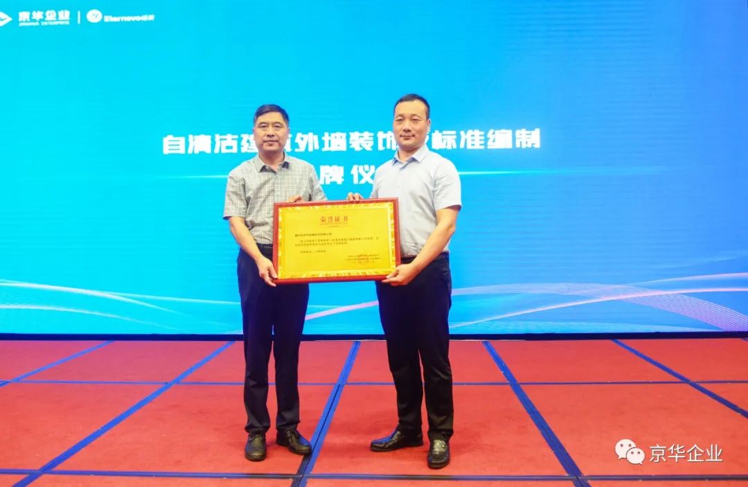 来自中国建材规划院应用技术开发研究院/中关村人居环境工程与材料研究院副院长王忠勇先生就绿色建筑及绿色建材课题向现场嘉宾进行了分享,并向NG娱乐企业授予 “自清洁建筑外墙装饰板标准编制” 荣誉牌,对NG娱乐企业参与建筑板材生产标准编制表示鼓励与肯定。
